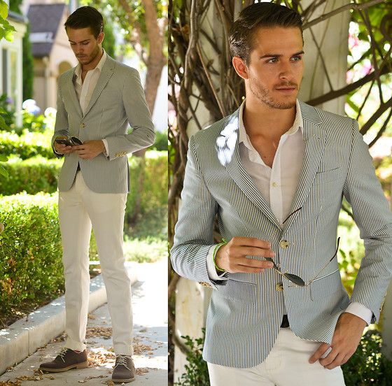 poco del clásico traje, combina unos pantalones beige o blanco con un